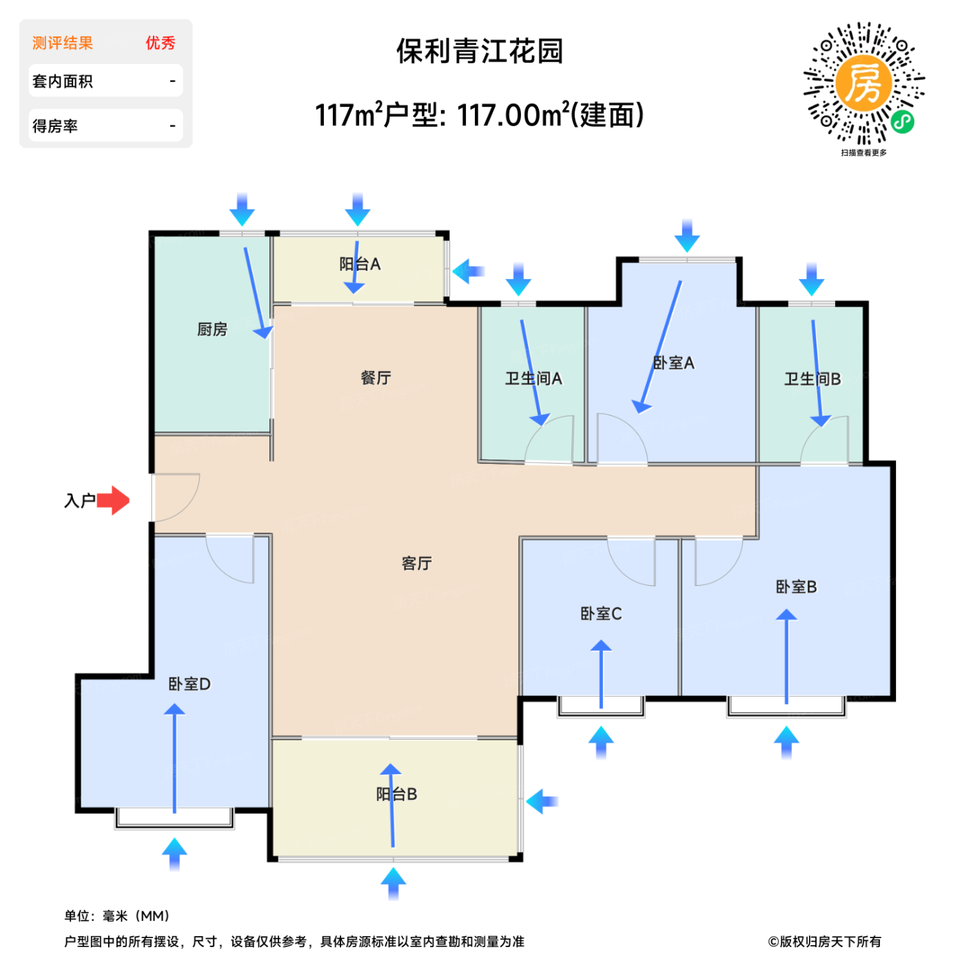 在售117㎡户型 | 建面:117㎡ | 朝向:南,东,西,东北,西北
