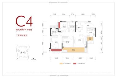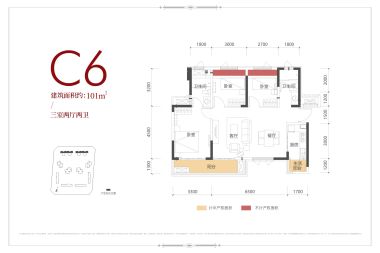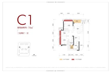 售完C3户型 | 建面:85㎡ | 朝向:南,东,西,南北,北,东北