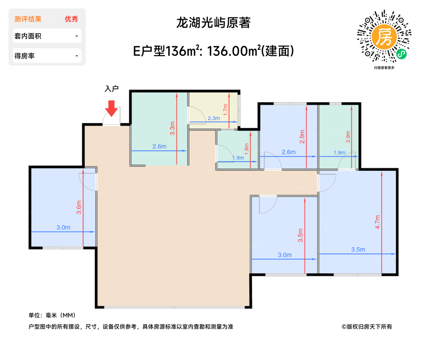 | 主卧 | 16.6 | 3.5 | 4.7 | 优秀 |