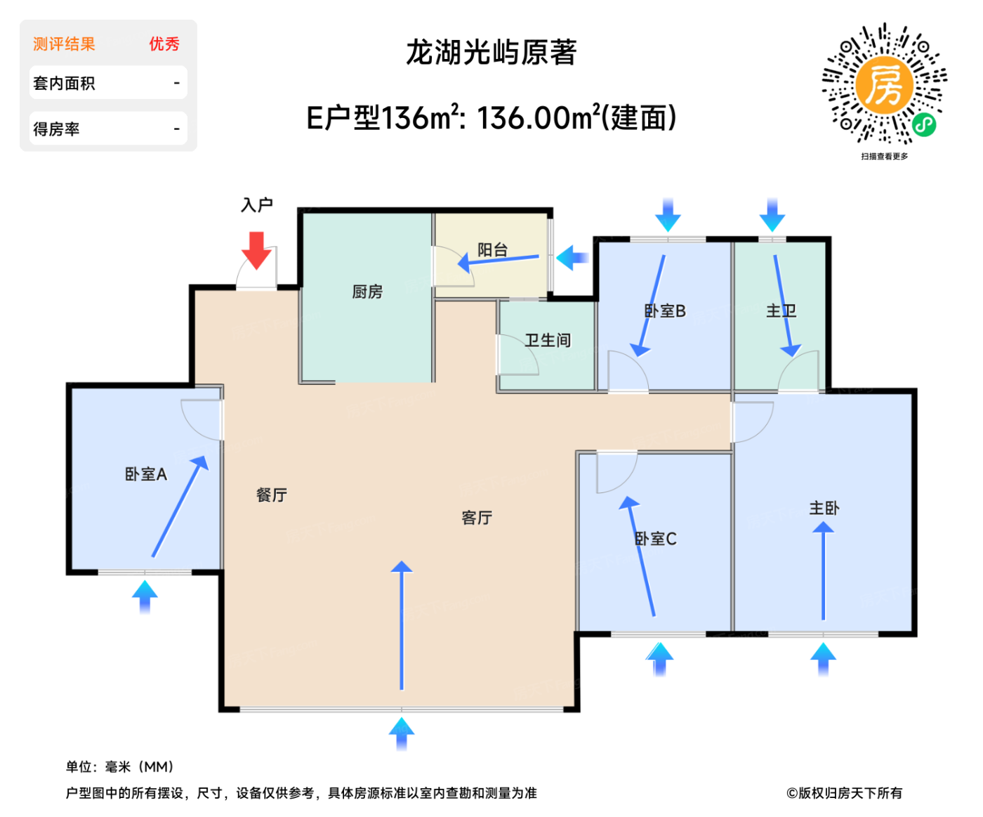 在售E户型136㎡ | 建面:136㎡ | 朝向:东南