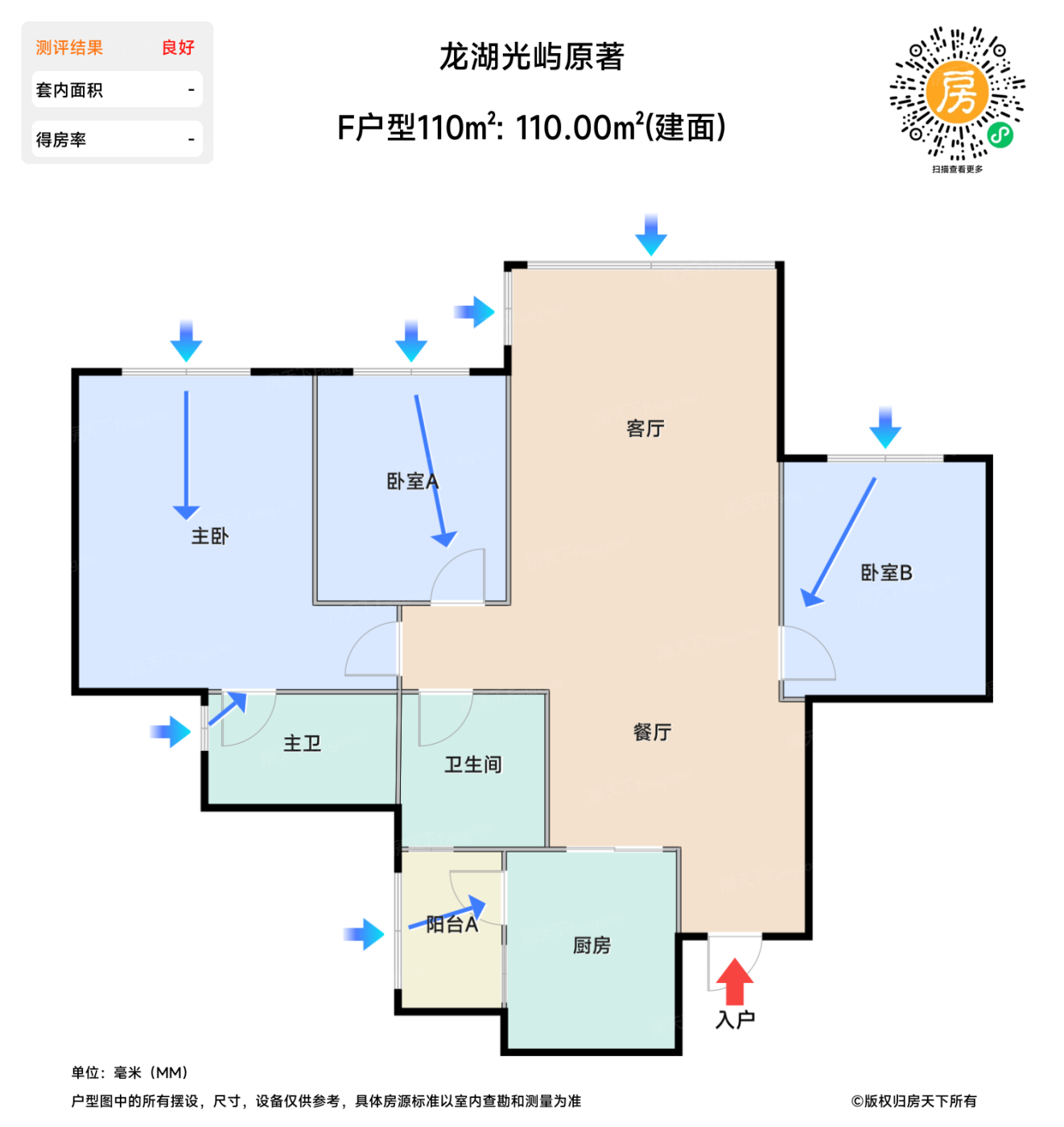 在售F户型110㎡ | 建面:110㎡ | 朝向:西北