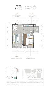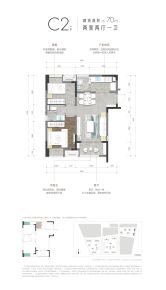 待售C1户型 | 建面:72㎡ | 朝向:东