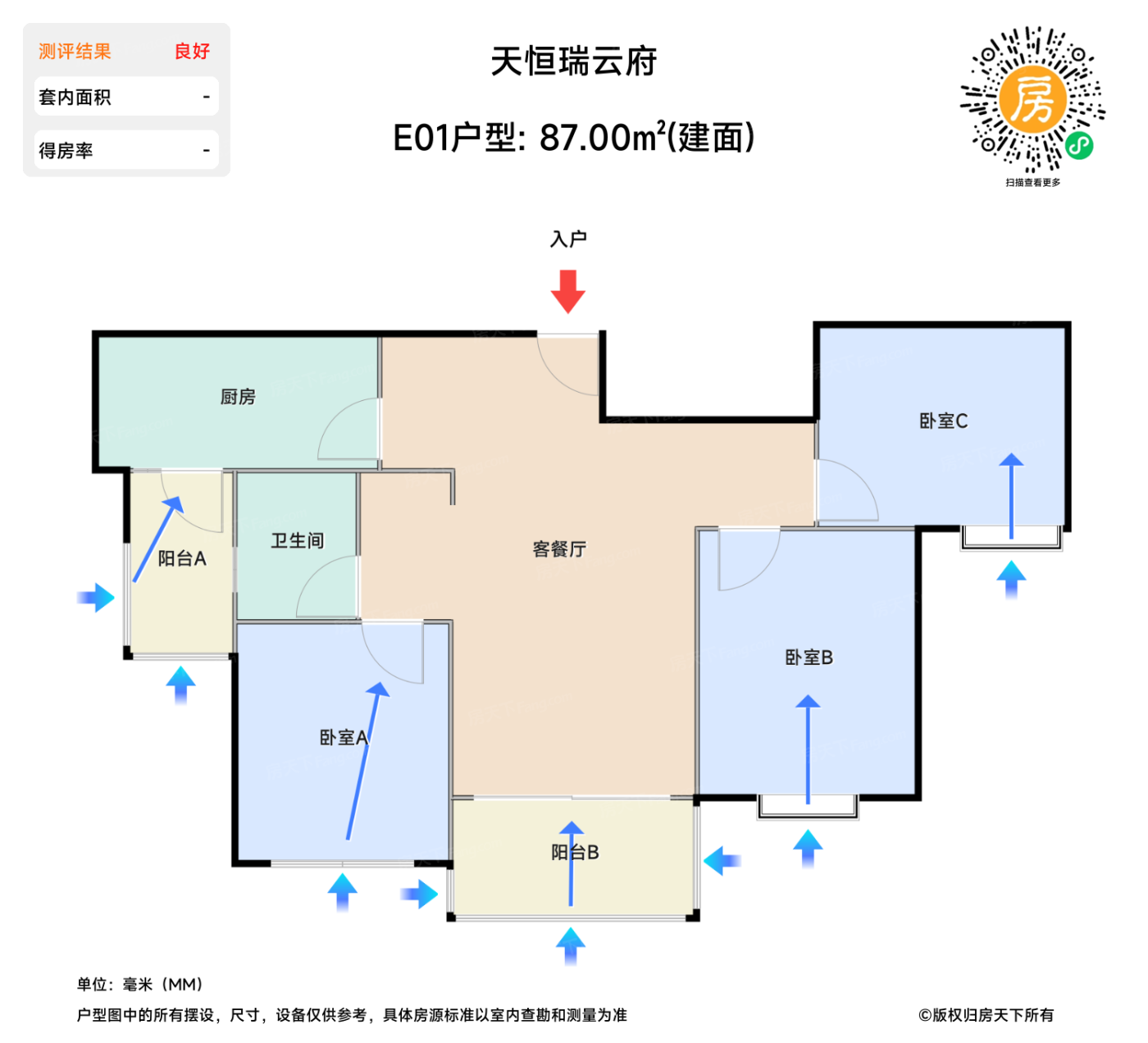 | 卧室C | 8.9 | 3.3 | 2.7 | 良好 |