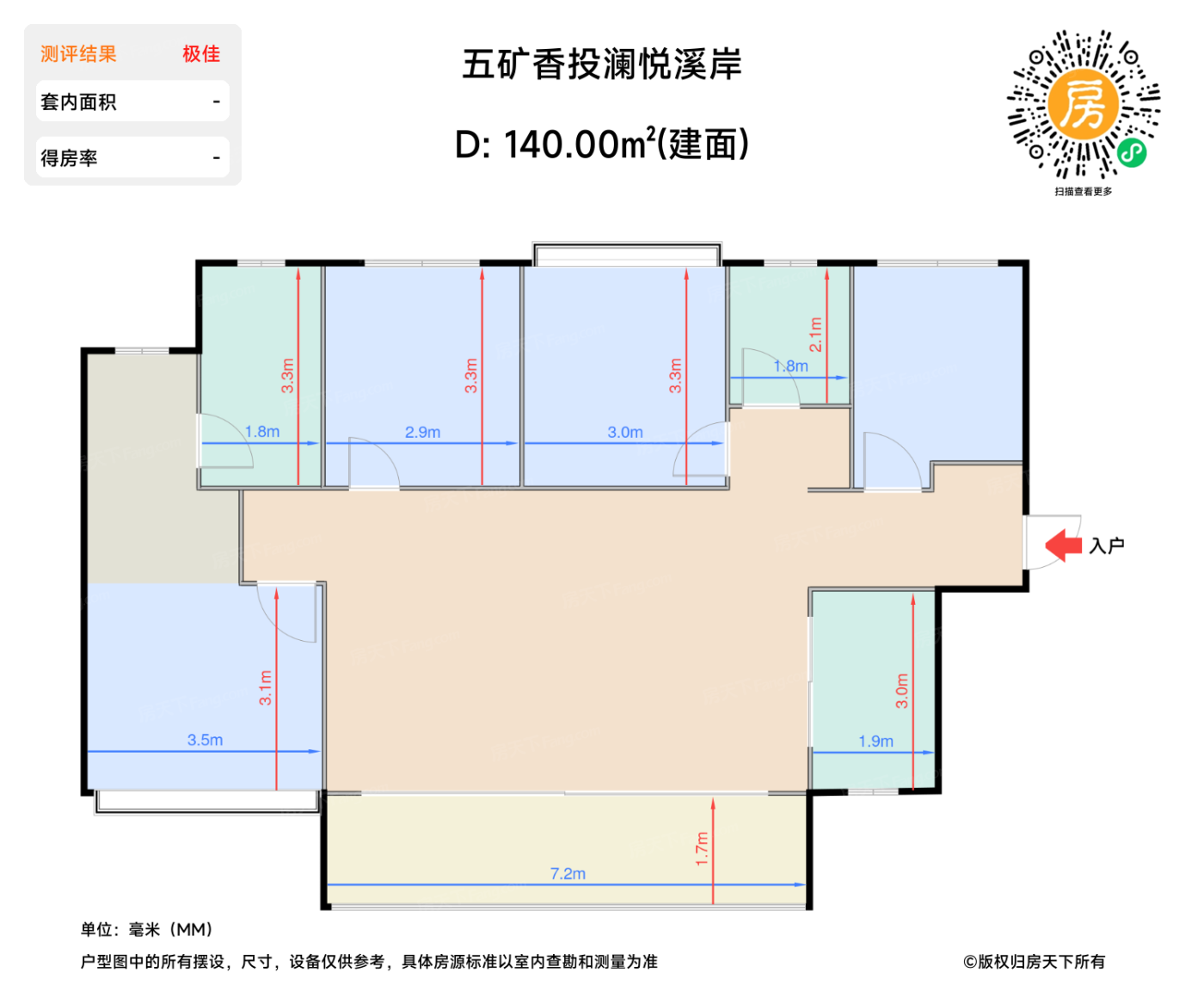 | 客餐厅 | 41.8 | 11.6 | 5.7 | 极佳 |