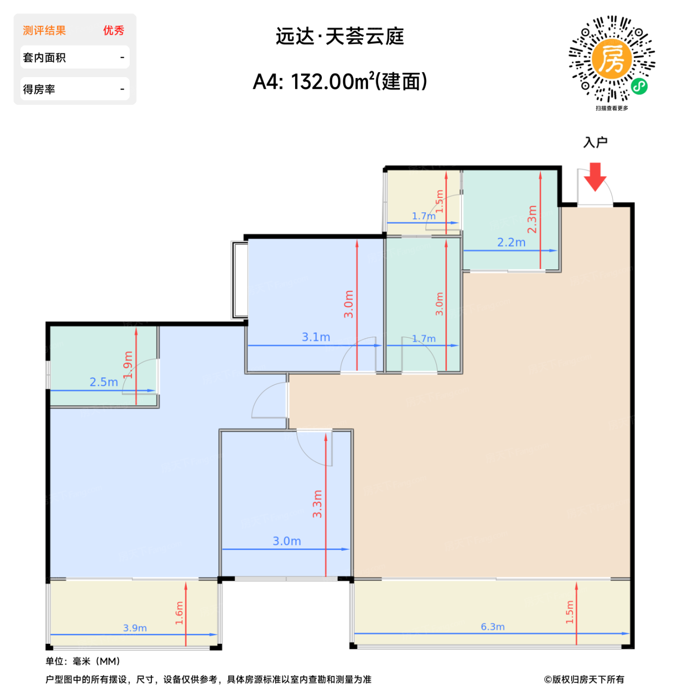 | 卧室C | 9.9 | 3 | 3.3 | 良好 |