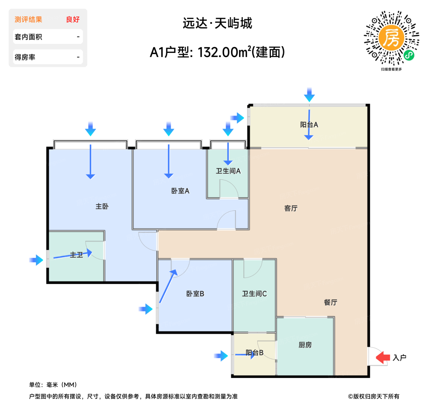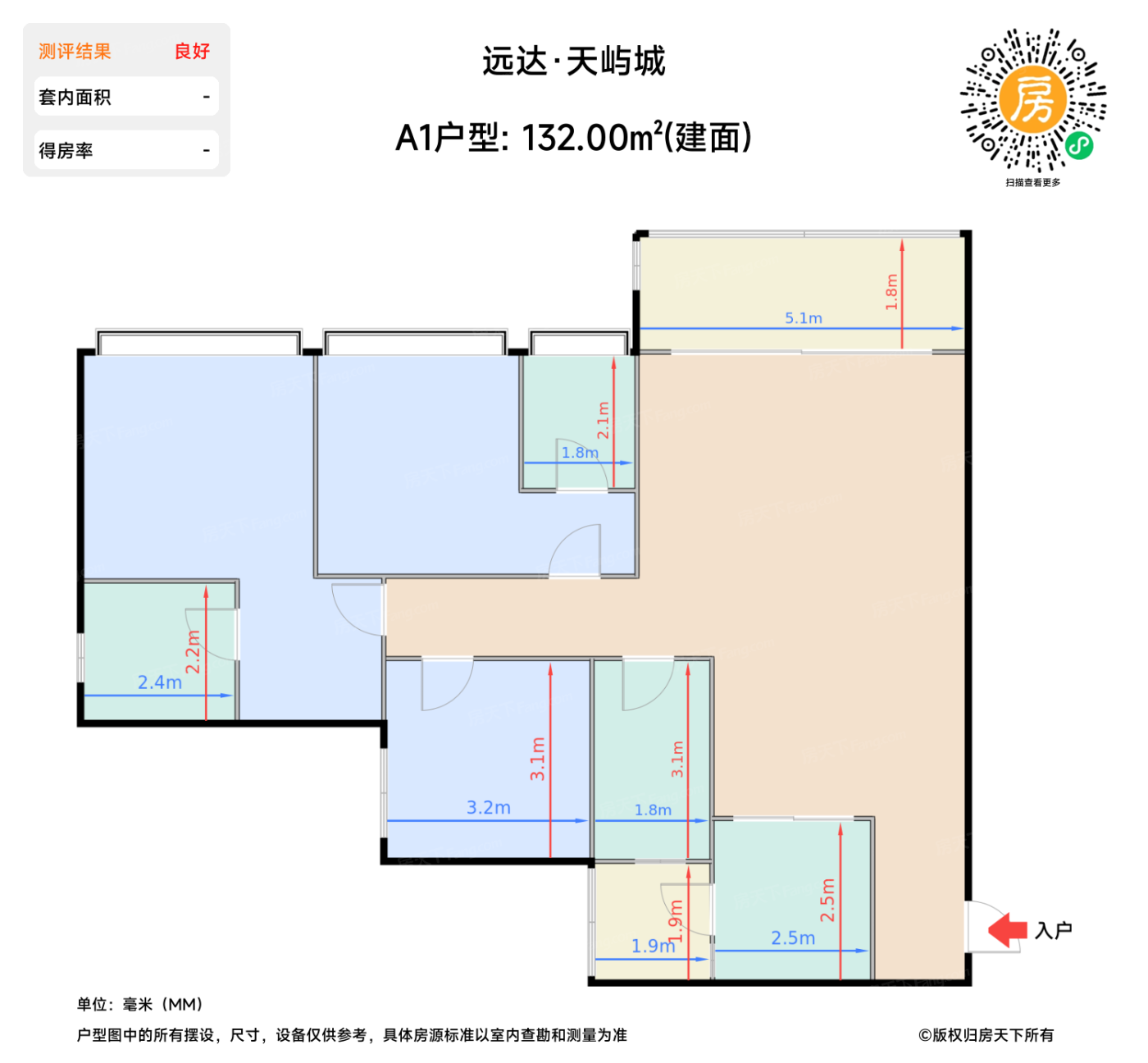 | 卧室A | 13.2 | 4.9 | 3.5 | 良好 |