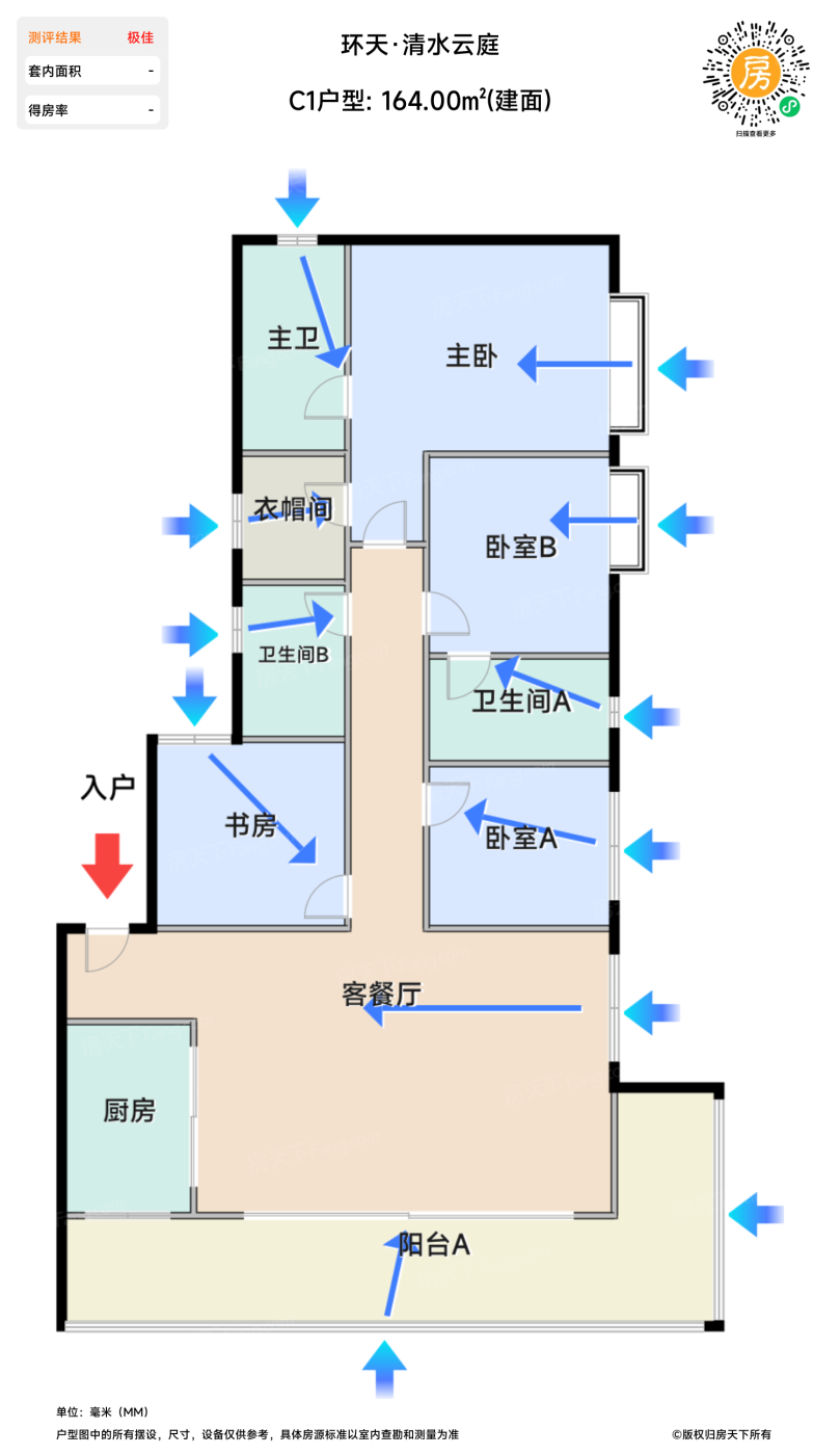待售C1户型 | 建面:164-164.1㎡ | 朝向:南