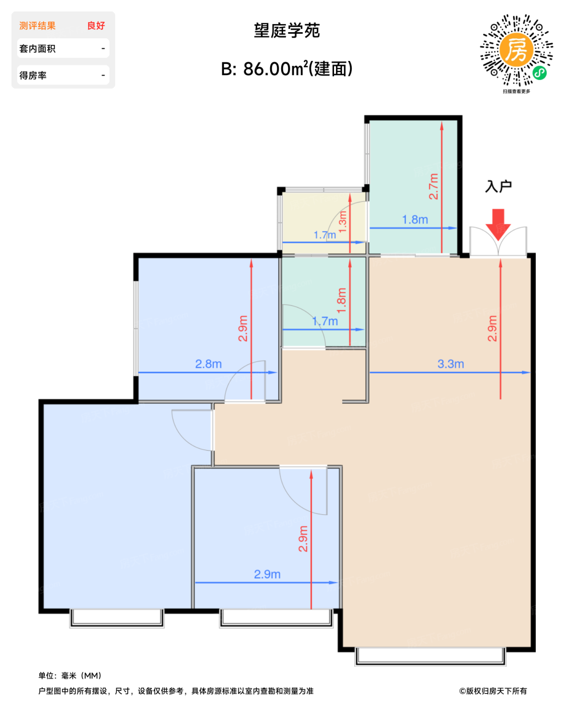 | 卧室B | 8.3 | 2.9 | 2.9 | 良好 |