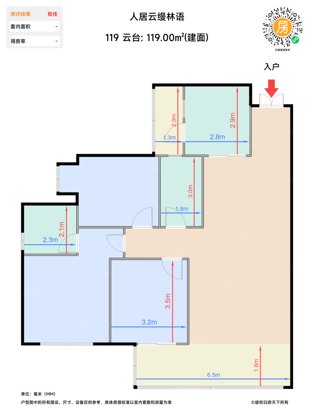 | 主卧 | 15.8 | 4.2 | 4.9 | 极佳 |