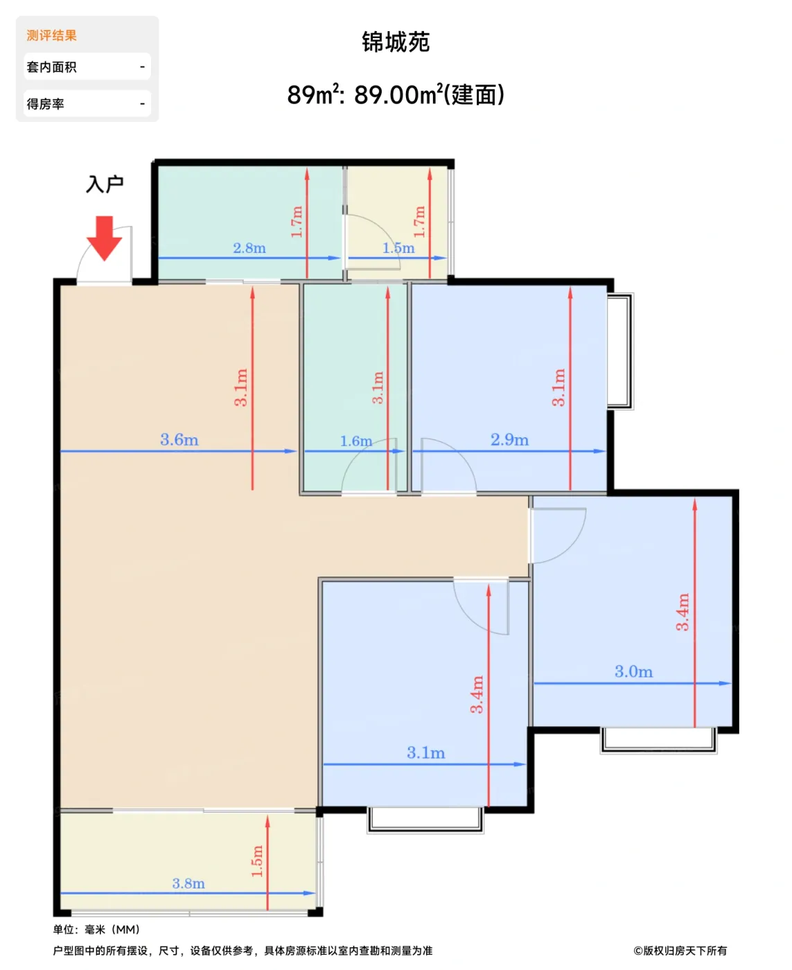 | 卧室A | 9 | 2.9 | 3.1 | 良好 |