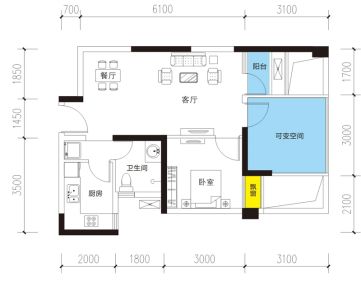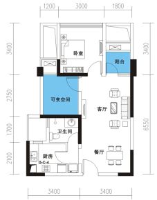 2室1厅1卫1厨