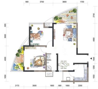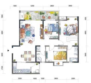 - 空间适中卧室C设计得十分精巧,每一寸空间都得到了合理的利用,既实用又美观,让您在有限的空间里享受无限的舒适。