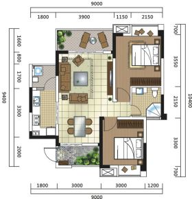 2室1厅1卫1厨