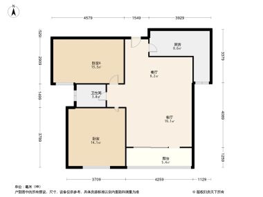 售完交大卡布里城2居室户型图 | 建面:84.56㎡ | 朝向:东北