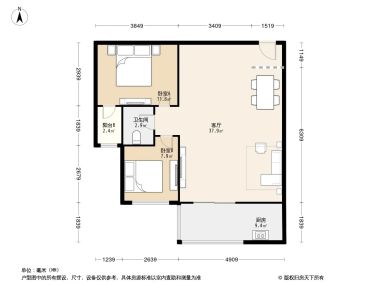 室内空间对应面积。