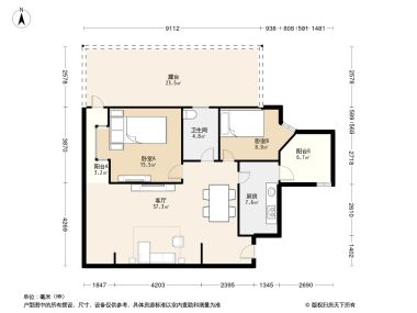 室内空间对应面积。