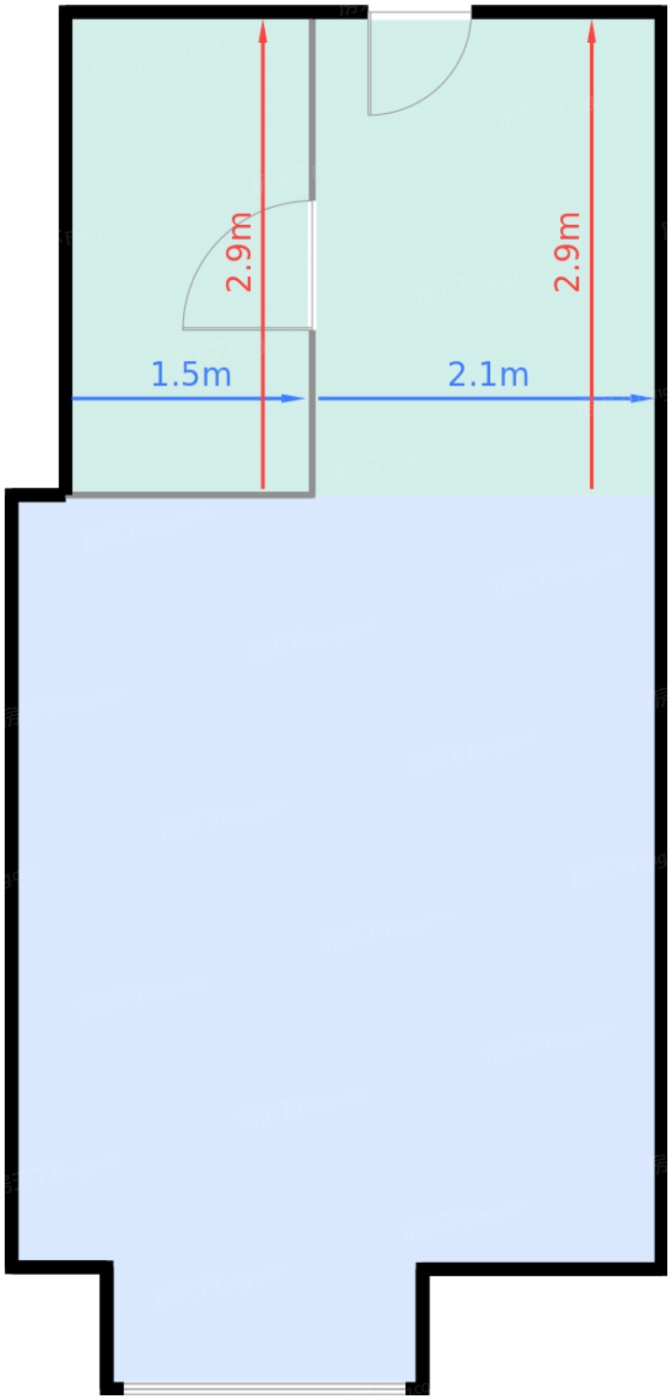 卫生间 3.8㎡ | 面宽1.5m | 进深2.9m