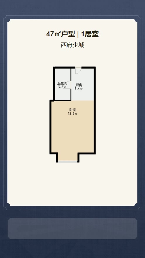 售完西府少城1居室户型图 | 建面:47.5㎡ | 朝向:朝南