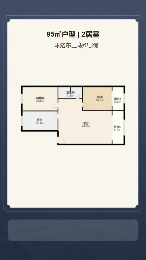 售完东风路居民点2居室户型图 | 建面:95.21㎡ | 朝向:东南