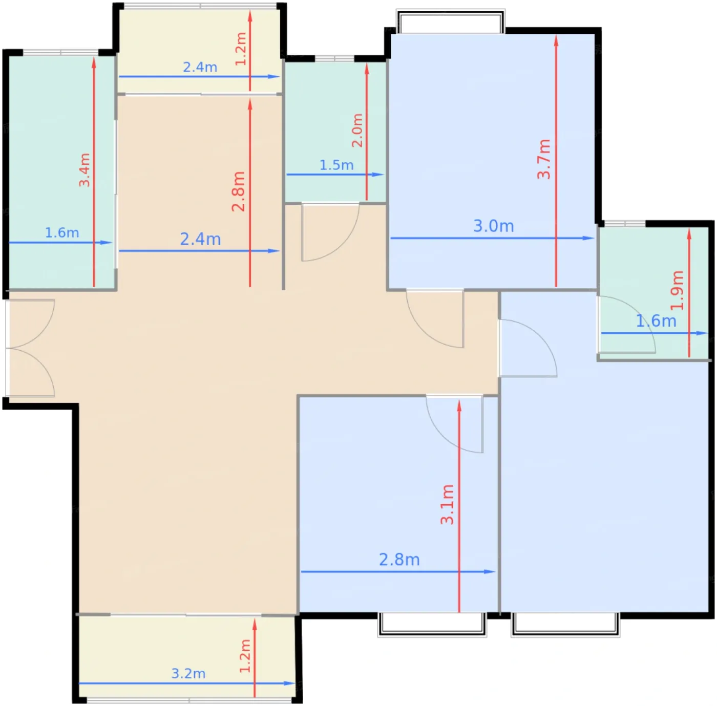 | 阳台B | 3.8 | 3.2 | 1.2 | 良好 |