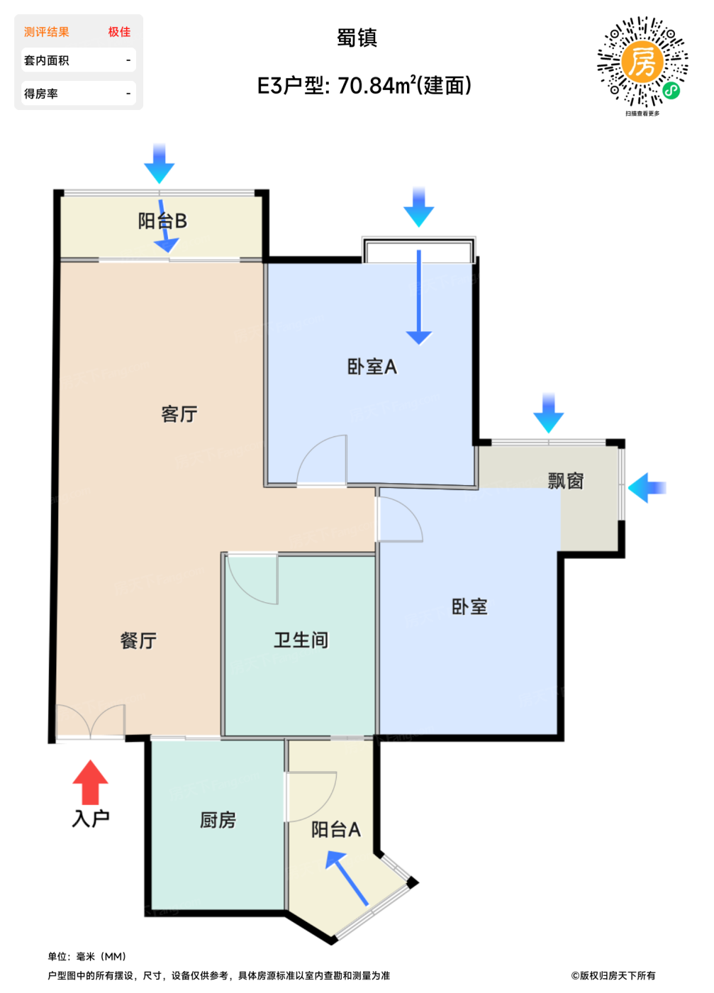 售完 E3户型 | 建面:70.84㎡ | 朝向: