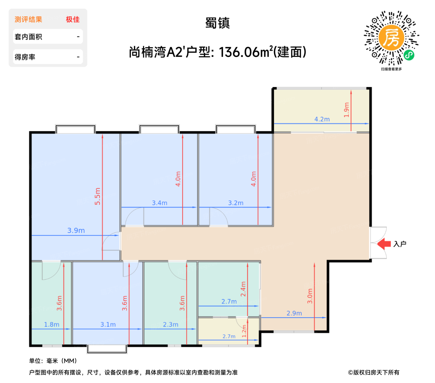 | 主卧 | 21.4 | 3.9 | 5.6 | 极佳 |