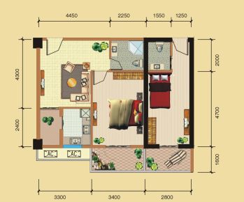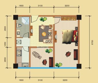 1室2厅1卫1厨