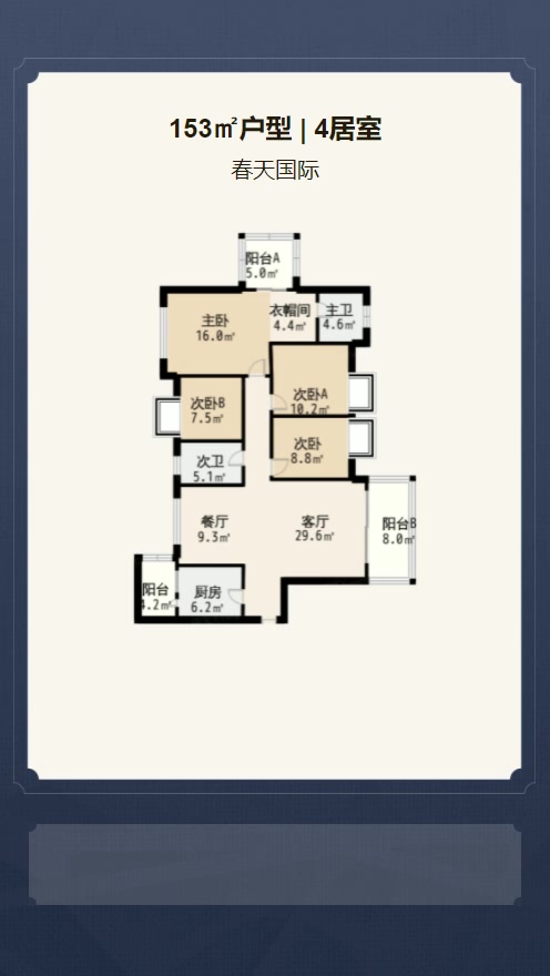 售完一期2号楼标准层A4户型(售罄) | 建面:153.23㎡ | 朝向: