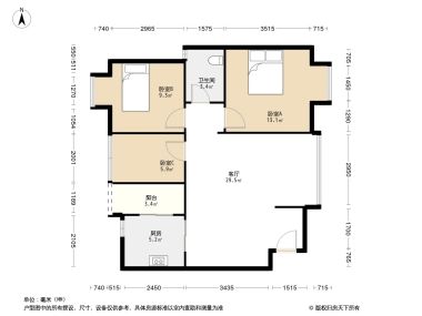 金枫名苑3居室户型图
