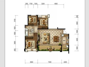 客厅 50.7㎡ | 面宽7.5m | 进深8.9m
