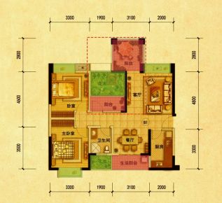 室内空间对应面积。