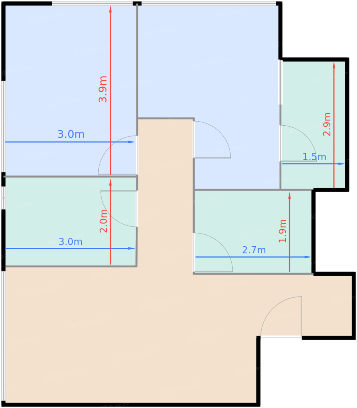 | 卧室B | 11.7 | 3 | 3.9 | 良好 |