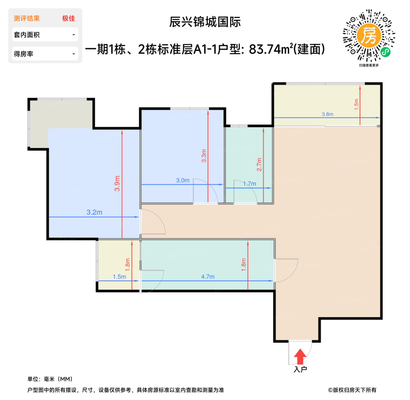 | 卧室A | 9.8 | 3 | 3.3 | 良好 |