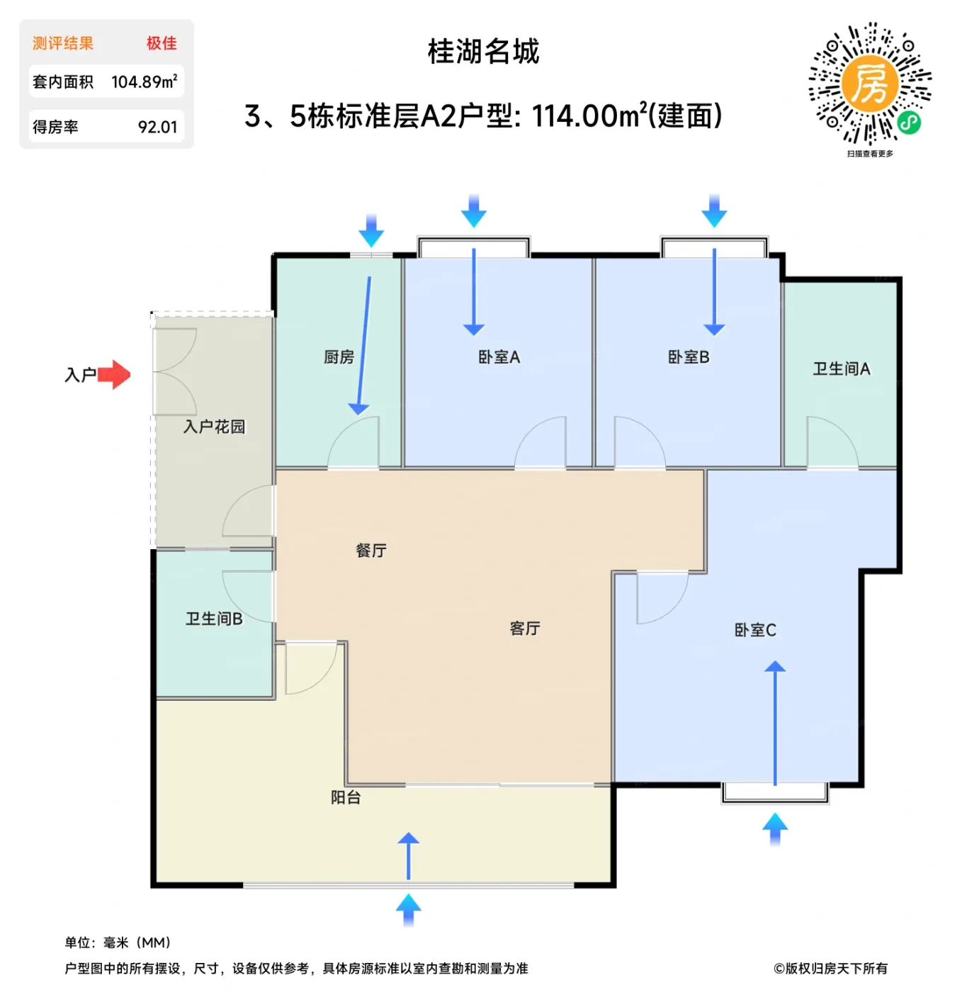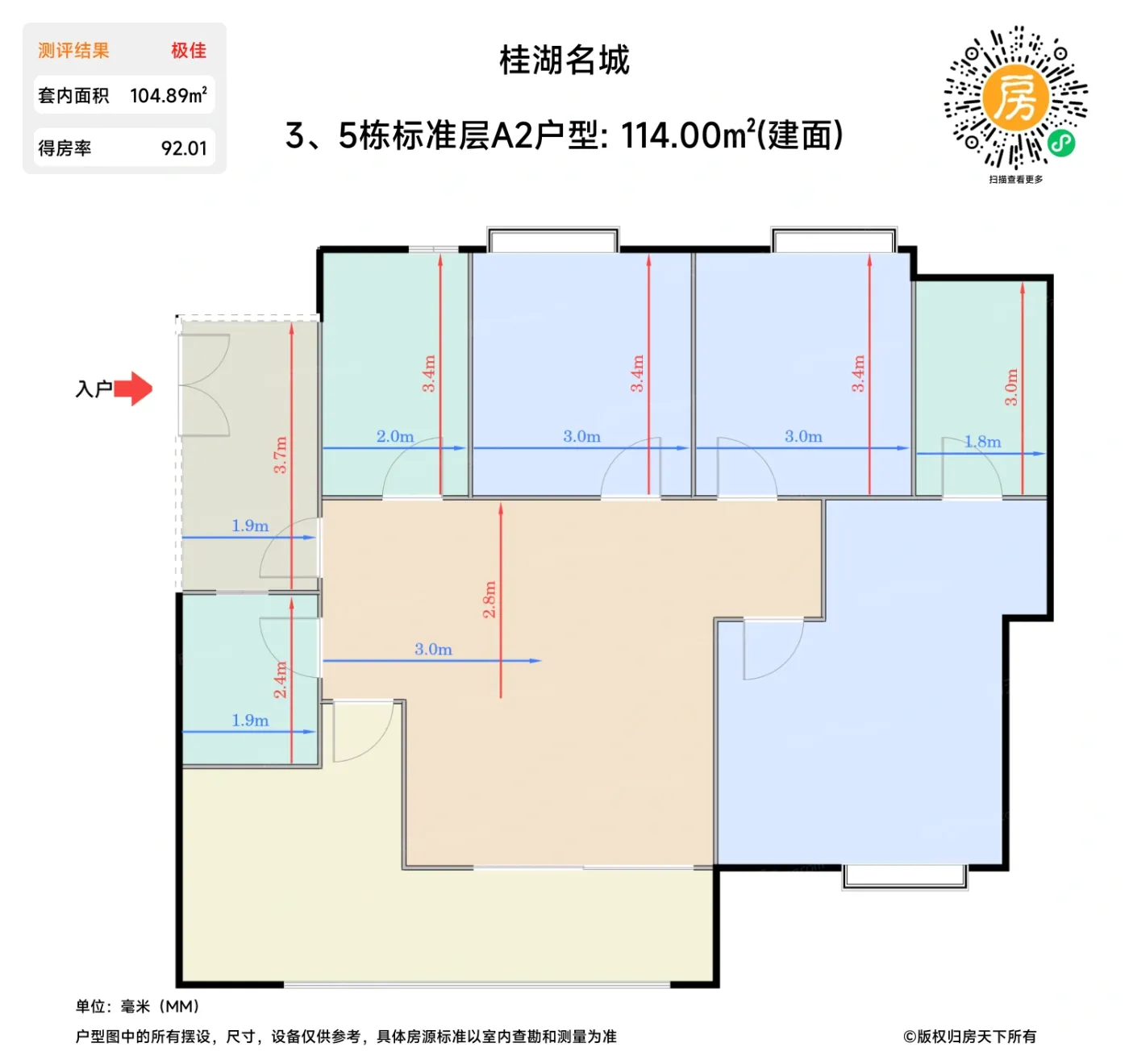 | 卧室B | 9.9 | 3 | 3.4 | 良好 |
