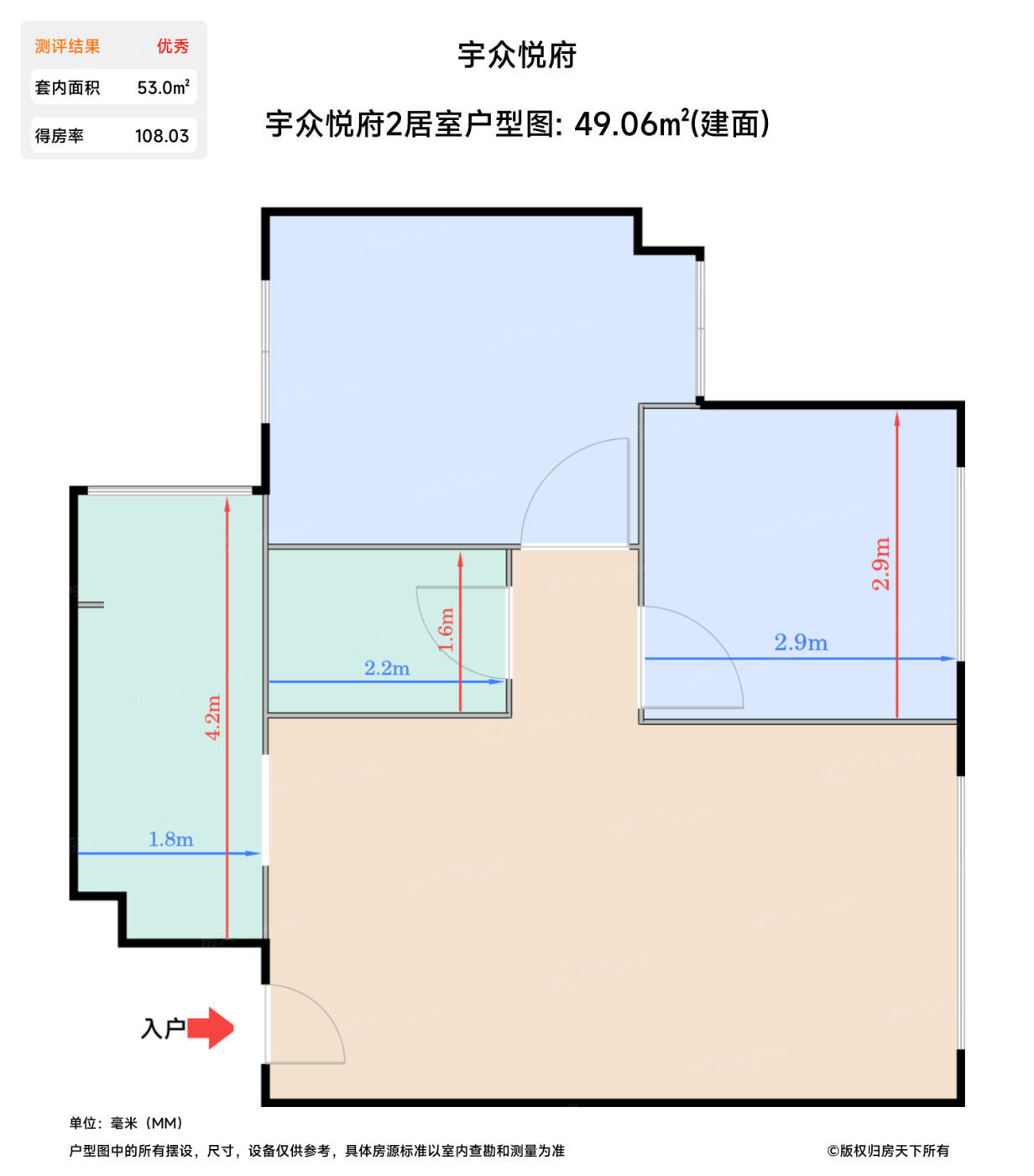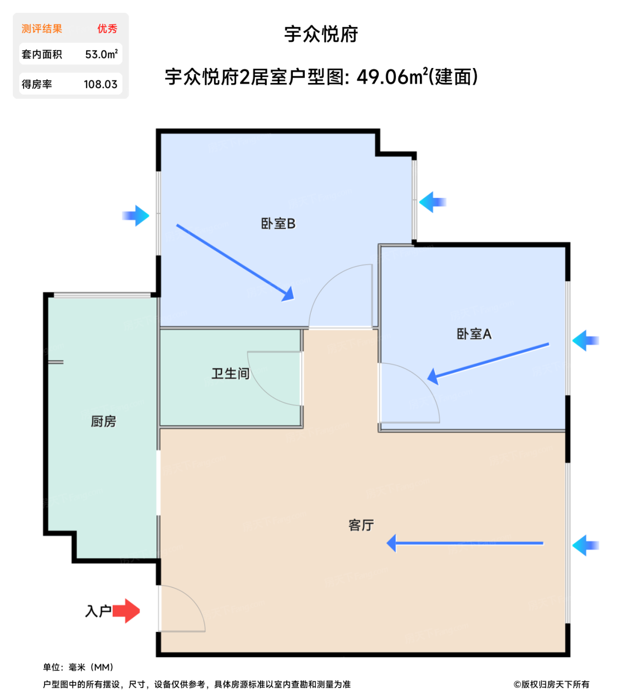 | 卧室B | 11.4 | 4 | 3.1 | 良好 |