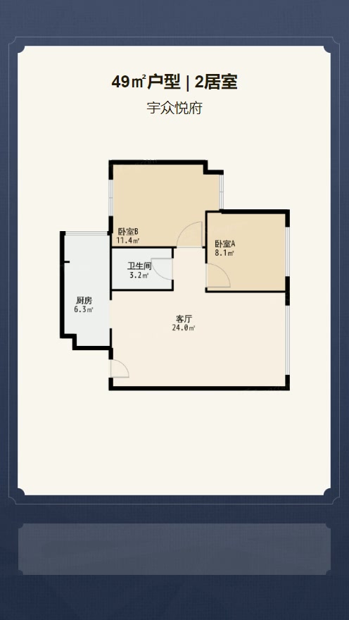 售完宇众悦府2居室户型图 | 建面:49.06㎡ | 朝向:东南
