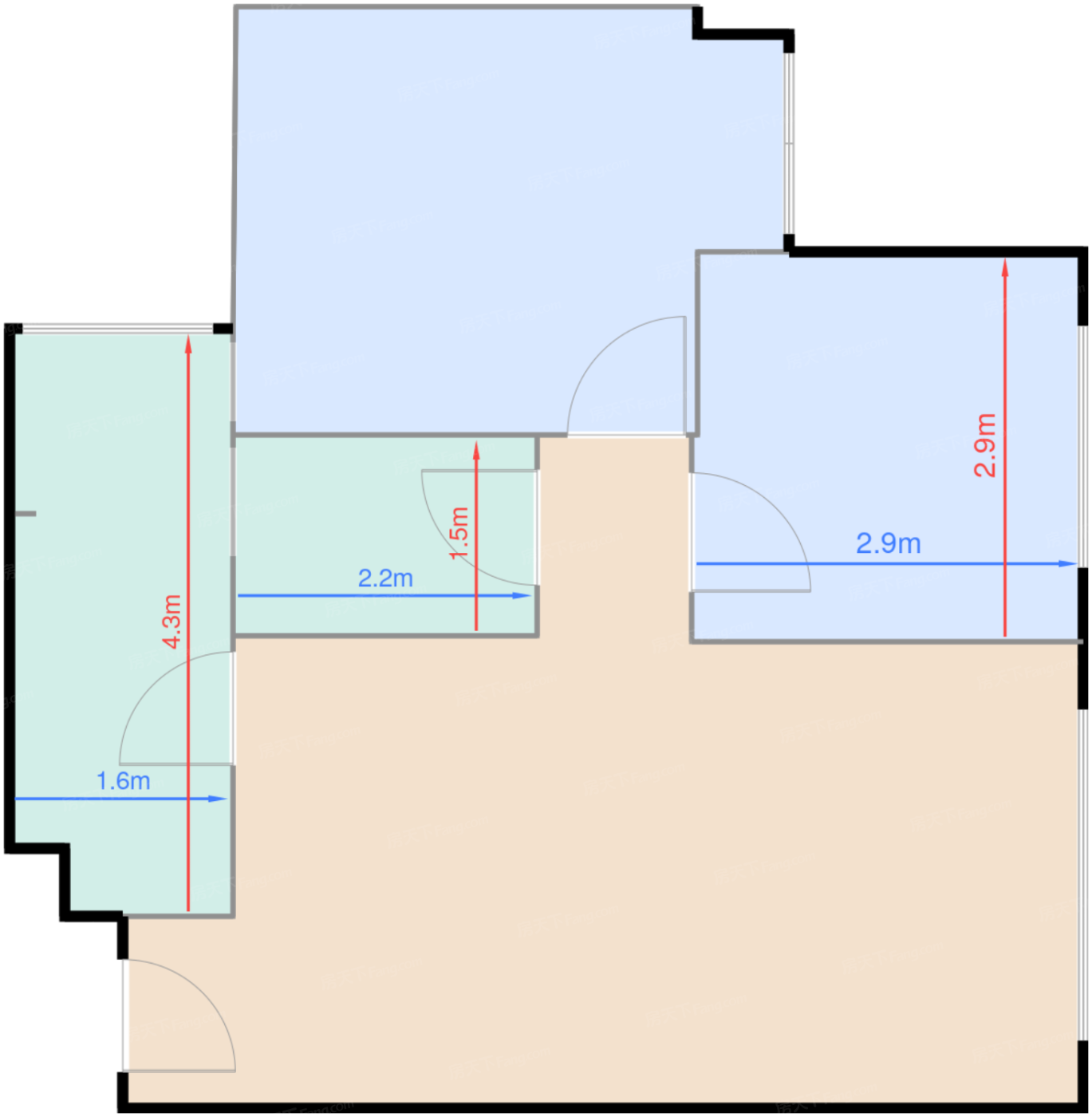 厨房 6.4㎡ | 面宽1.6m | 进深4.3m