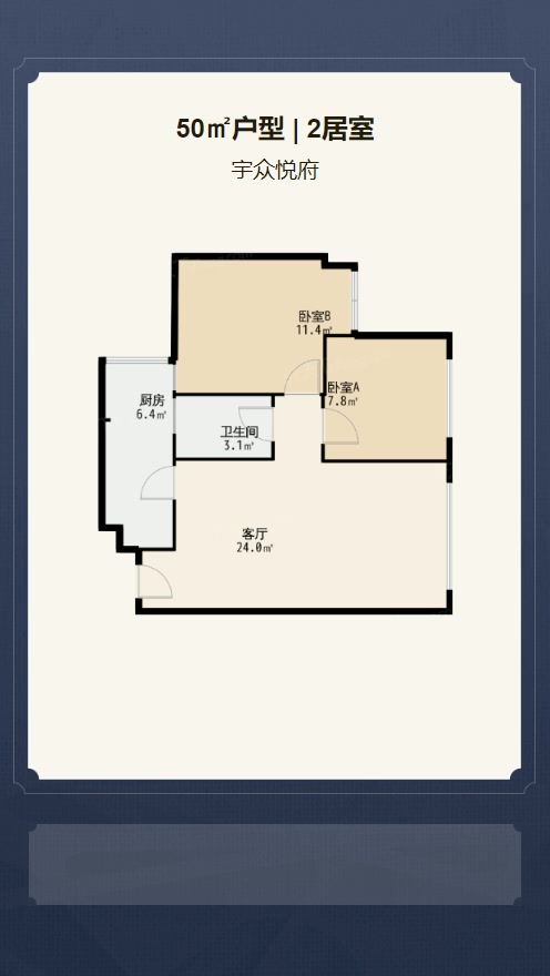 售完宇众悦府2居室户型图 | 建面:50.38㎡ | 朝向:东北
