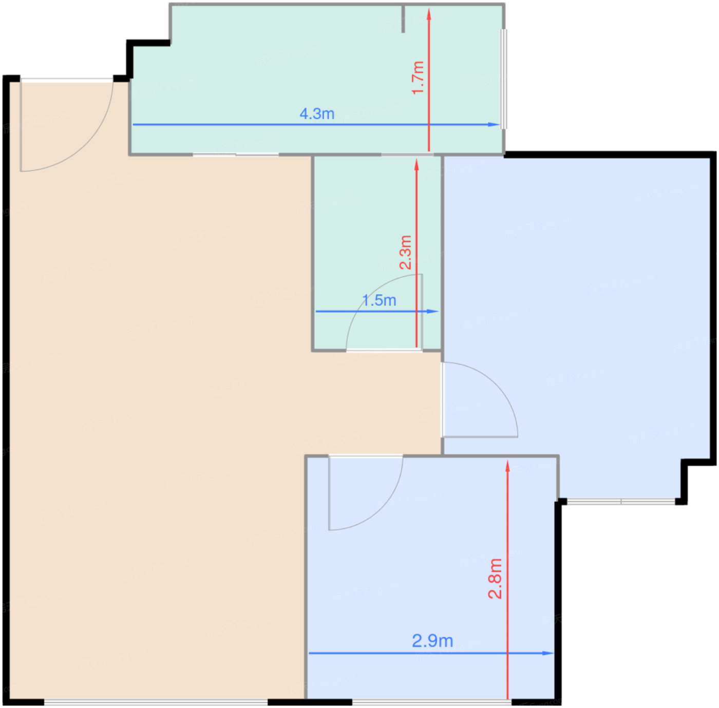 卧室A 7.9㎡ | 面宽2.9m | 进深2.8m