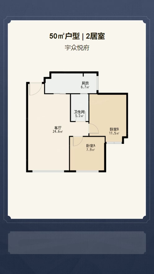 售完宇众悦府2居室户型图 | 建面:50.87㎡ | 朝向:西南