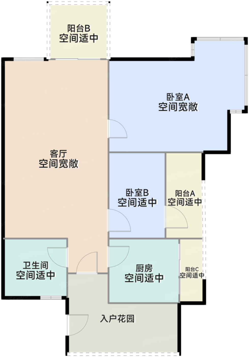 - 空间较大卧室A空间开阔,无论是休息还是储物,都能满足您的需求。
