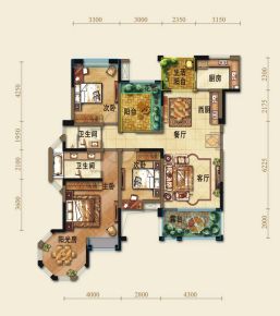 售完幸福世家2居室户型图 | 建面:80㎡ | 朝向:南北通透