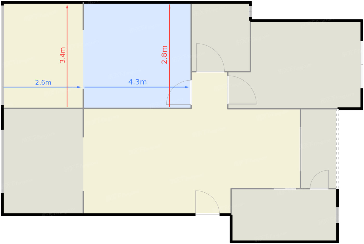 卧室B 11.7㎡ | 面宽4.3m | 进深2.8m