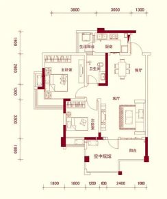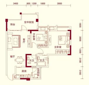 室内空间对应面积。