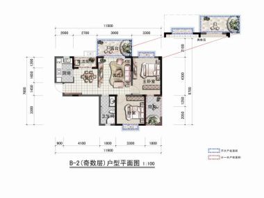 售完1期2号楼奇数层B3户型 | 建面:69.5㎡ | 朝向: