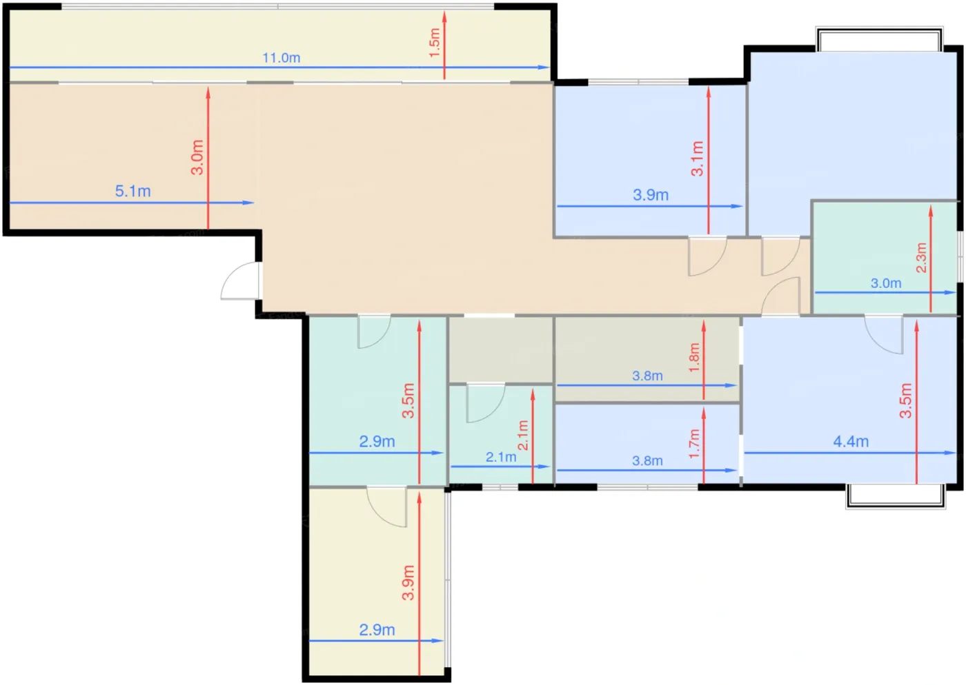 卧室A 12.1㎡ | 面宽3.9m | 进深3.1m