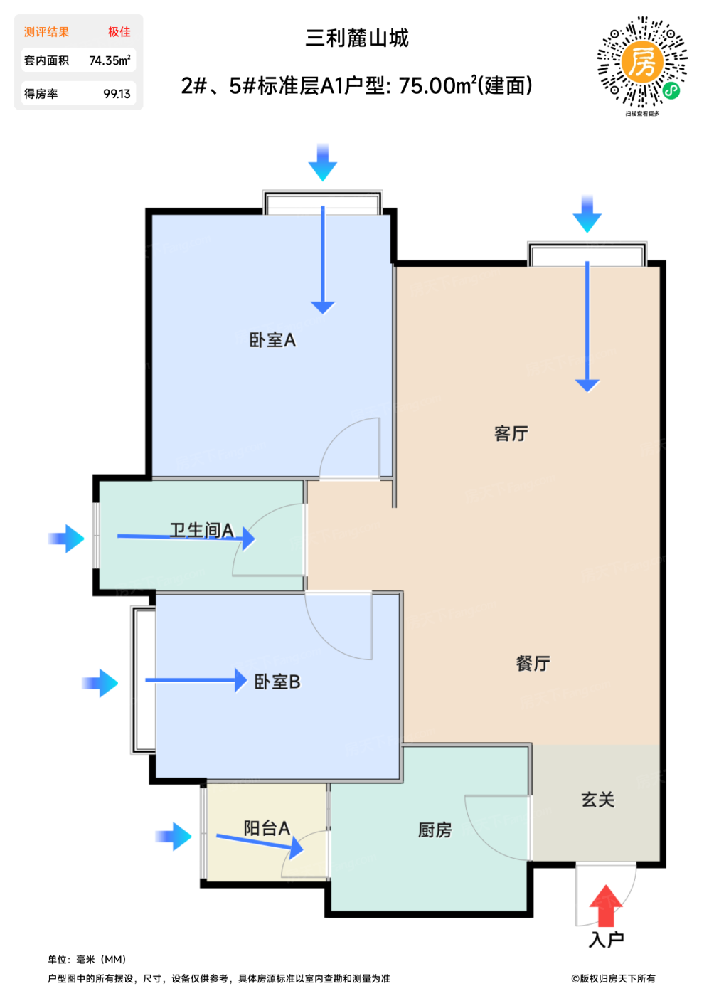售完2#、5#标准层A1户型 | 建面:75㎡ | 朝向: