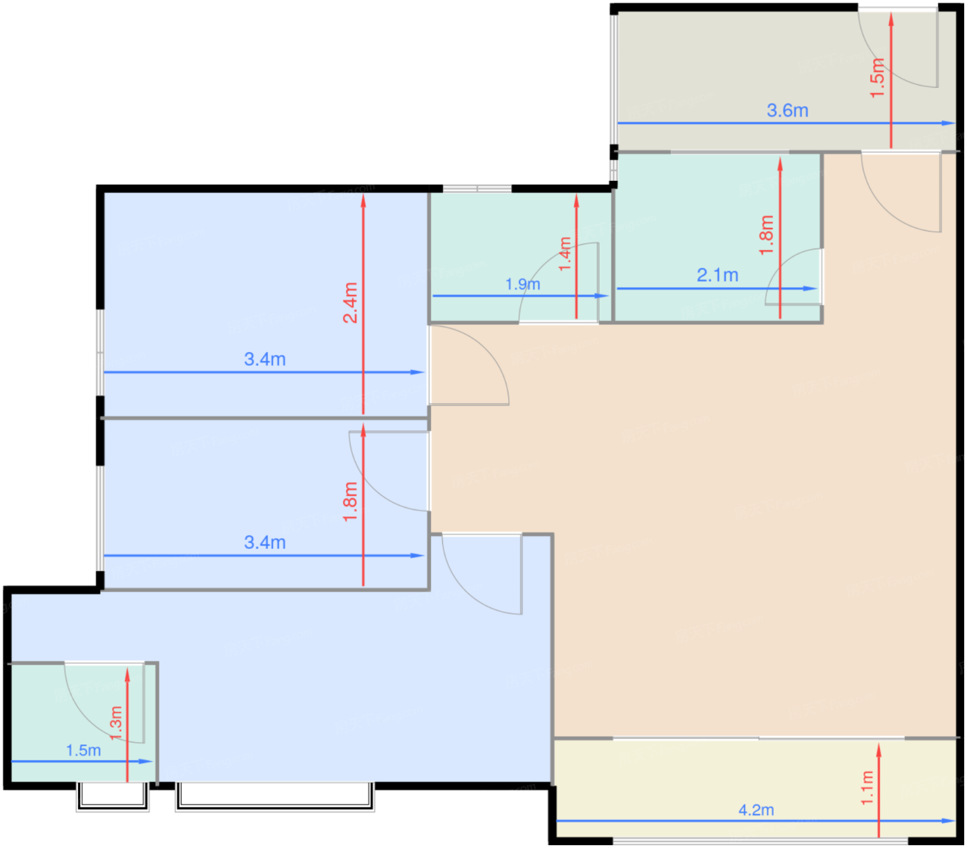 | 卧室B | 10.1 | 5.6 | 2.6 | 良好 |