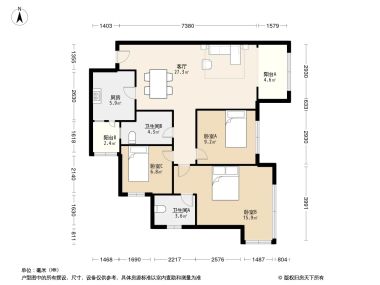 室内空间对应面积。