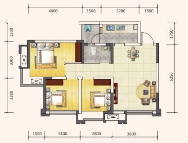 3室1厅1卫1厨